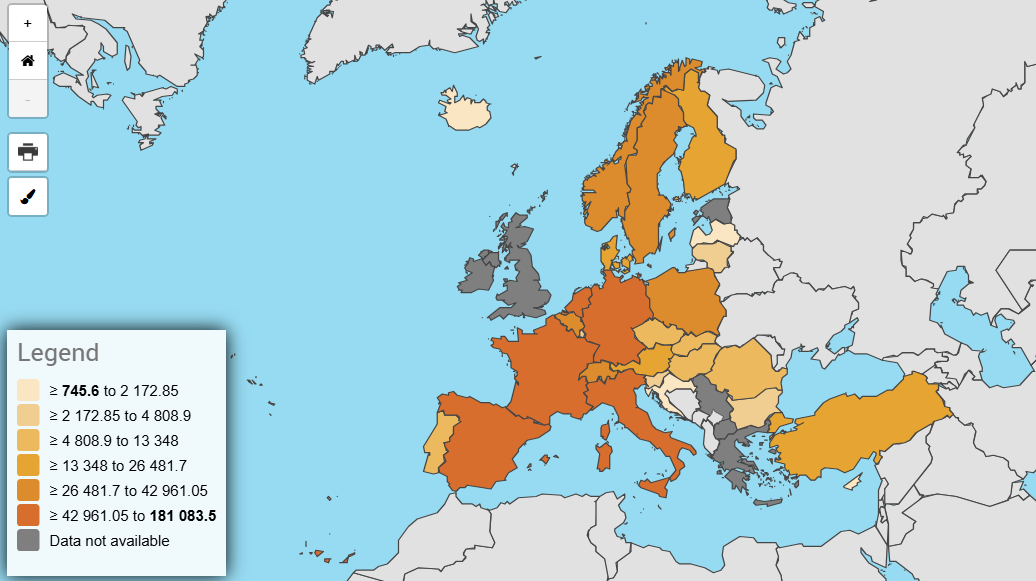 Јавно финансирање на образовниот систем во Европската Унија (во милиони евра, извор: Еуростат)