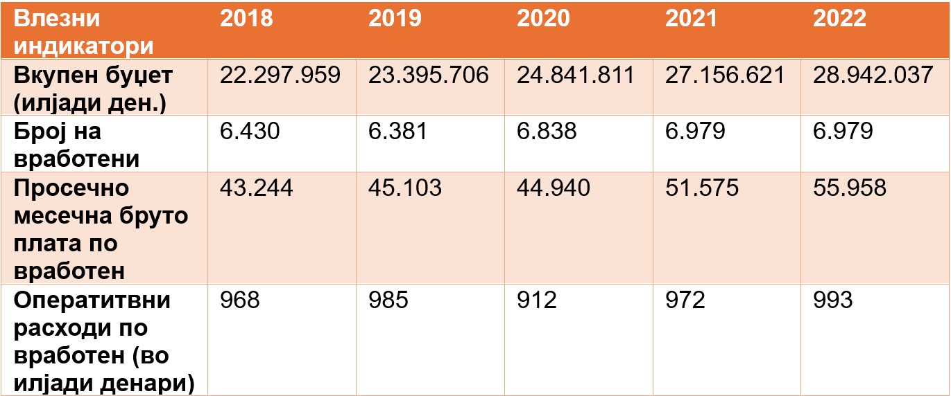 Како слаба страна на македонскиот образовен систем се посочува и неповолната структура на „образовниот буџет“ во кој најголема ставка се однесува за плати на вработените и за покривање на тековни трошоци на образовните институции. Многу мал или поточно кажано незначителен дел се одвојува за истражување и развој. Колку чини трошокот за плати на наставниот и друг кадар во последните години може да се види од табелата подоле. Што се однесува до буџетското издвојувањето за образование тоа е многу ниско, односно 3,3% од БДП додека во земјите со кои се споредуваме е 4,7%. Во последните години јавната потрошувачка за образованието се намалува на 3,71% од БДП во 2022 година (3,98% во 2021 година). Македонија сè уште е далеку под просекот на ЕУ, кој изнесува пет отсто за 2022 година. За споредба со другите земји од Западен Балкан, Србија во 2023 година за образование издвои 3,5 отсто од БДП, од нив 31,7 милиони динари односно 15,8 отсто повеќе издвои за науката од 2022 година, а за истражување и развој 0,4 отсто од БДП. Како што не информираа од Министерството за образование и наука, просекот во Македонија во последните години е некаде околу 3,4% од БДП.