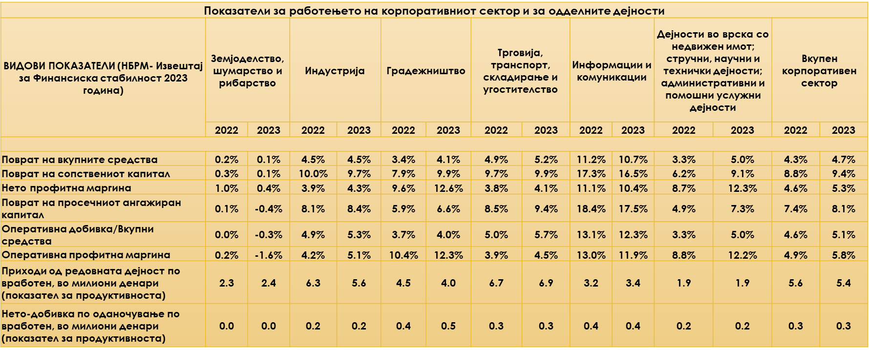 И на крај. Високата инфлација беше доходовна и за корпоративниот сектор. Од последниот извештај на Народата банка може да се констатира дека и покрај високиот раст на трошоците за производство (вклучително плати, електрична енергија, нафта и останати суровини), фирмите (со исклучок на микро фирмите) трета година по ред имаат раст на добивките и нето-каматната маргина растеше. Вкупните приходи на корпоративниот сектор бележеа исклучителен раст во 2021 година (по отворањето на економијата по ковид кризата), а во 2022 година поради високата инфлација. Во 2023 година, вкупните приходи на корпоративниот сектор се намалија минимално (во најголем дел поради индустријата), но кај останатите дејности продолжија да растат. Од друга страна, расходите забележаа поинтензивно намалување поради намалените трошоци за суровини и набавка на стоки. Но, и натаму трошоците за вработените растат со двоцифрена стапка на раст (во услови на забрзан раст на просечната бруто-плата и речиси непроменет број на вработени), а затегнатите услови на финансирање условуваат повисоки каматни трошоци.