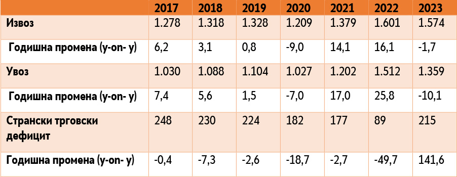Преглед на надворешно-трговската размена на Германија во периодот 2017-2023 година (во милијади евра)