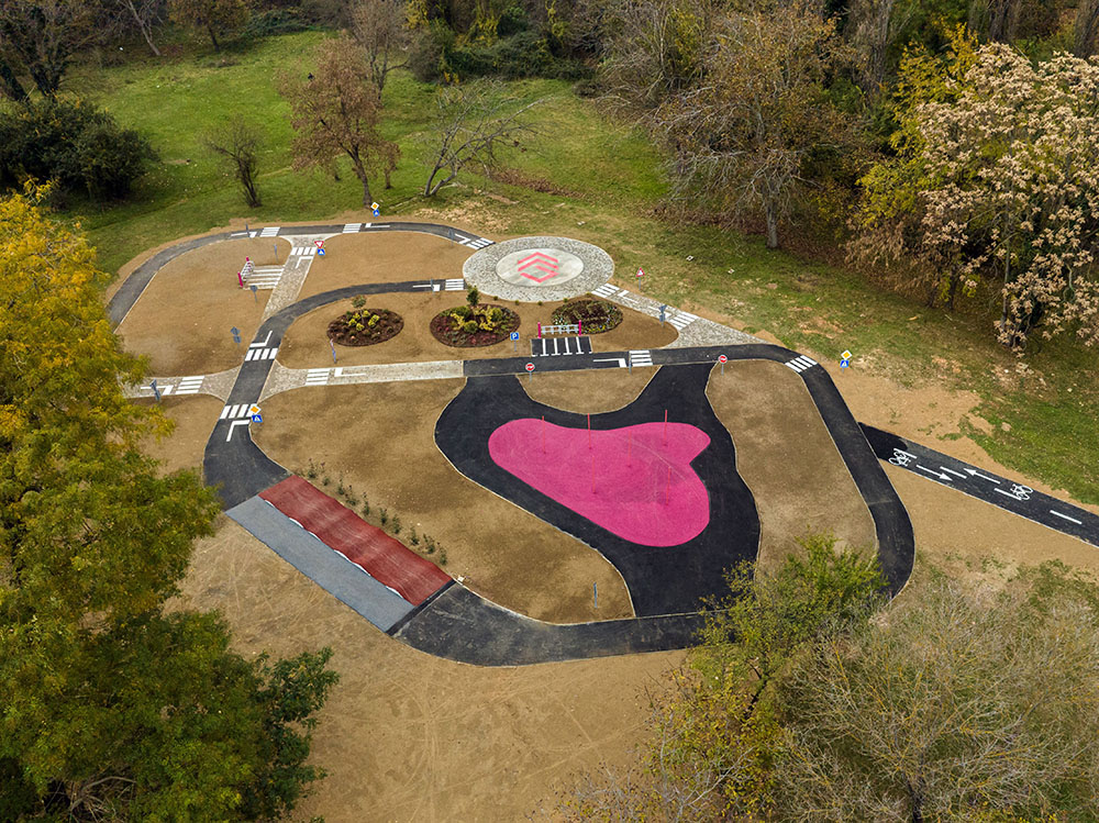 Како надополнување на бројните спортско-рекреативни содржини во големиот парк, семејствата со помали деца сега ќе можат на безбеден начин да вежбаат возење велосипед во урбани услови, а притоа и да учат и совладуваат бројни сообраќајни правила со помош на поставената хоризонтална и вертикална сигнализација.