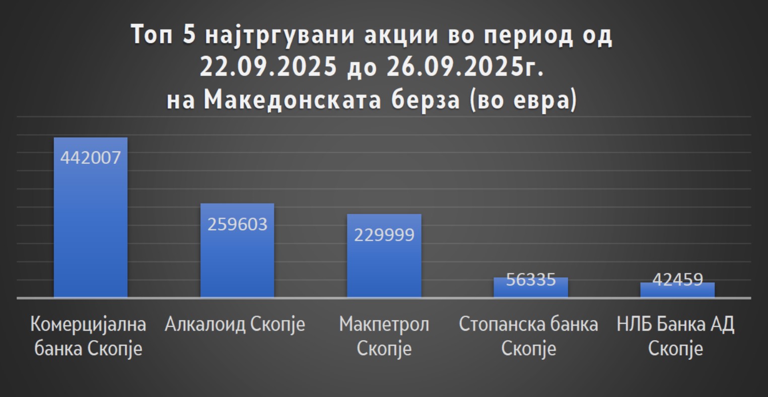 Кои беа најтргувани акции во период од 22.09.2025 до 26.09.2025г. на Македонската берза?
