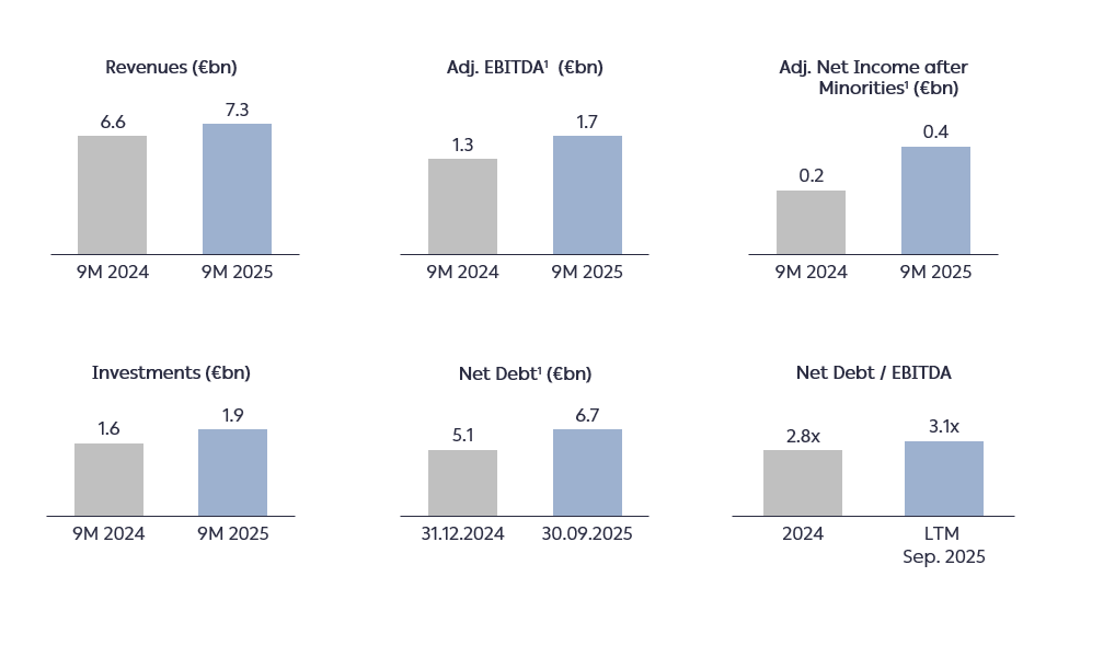 Во текот на деветмесечниот период од 2025 година, инвестициите на Групацијата изнесуваа 1,9 милијарди евра, од кои приближно 88% беа наменети за проекти за обновливи извори на енергија (ОИЕ), флексибилно производство и надградба на дистрибутивните мрежи. Овие инвестиции ја поддржуваат стратегијата на Групацијата за развој на почисто и пофлексибилно портфолио за производство на енергија, додека континуирано ја модернизираат и дигитализираат својата инфраструктура во енергетската транзиција.