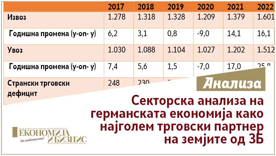 СЕКТОРСКА АНАЛИЗА НА ГЕРМАНСКАТА ЕКОНОМИЈА КАКО НАЈГОЛЕМ ТРГОВСКИ ПАРТНЕР НА ЗЕМЈИТЕ ОД ЗАПАДЕН БАЛКАН ВО ПРЕСРЕТ НА БИЗНИС-ФОРУМОТ ВО РАМКИТЕ НА БЕРЛИНСКИОТ ПРОЦЕС
