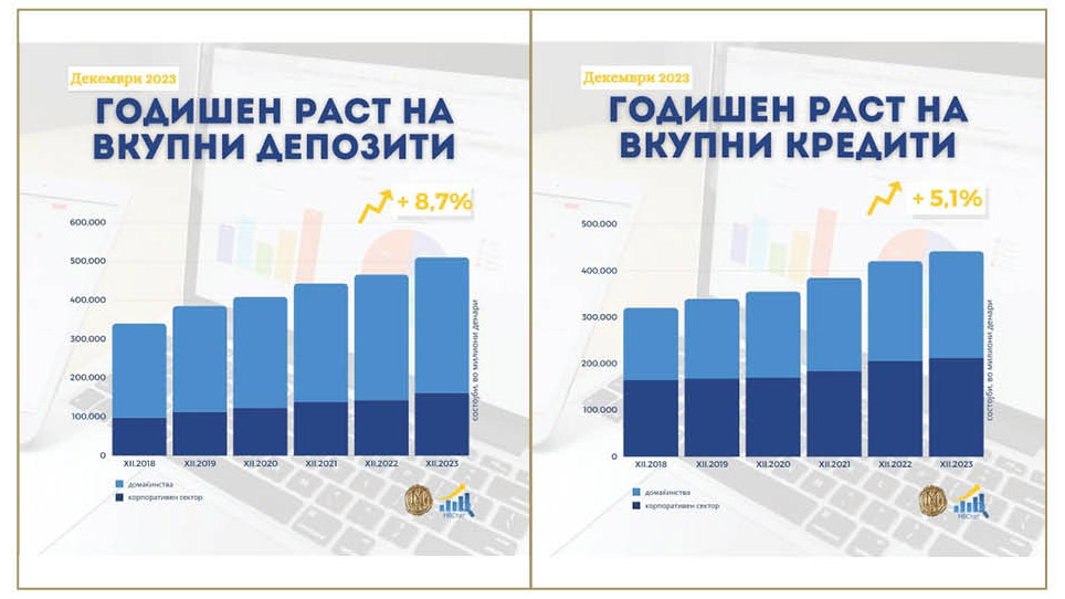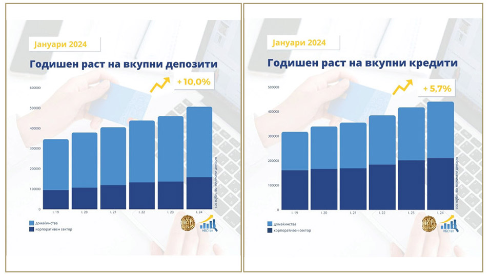 Годишен раст од 10,0% на вкупните депозити и од 5,7% на вкупната кредитна поддршка во јануари