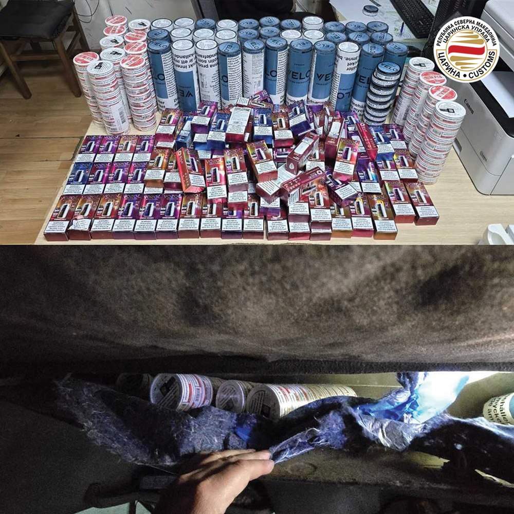 Во текот на минатата недела, царинските службеници открија повеќе обиди за криумчарење разна стока, при што привремено се задржани цигари, никотински ќесички, електронски цигари, тутун, автоделови, лекови за животни, облека, украсни производи, производи за сценски ефекти, девизи и фалсификати.