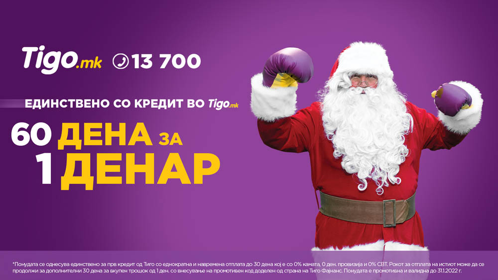 Финансиското друштво Тиго Фајнанс од денес започнува со нова, ексклузивна промотивна понуда за сите нови клиенти, наречена „60 дена за 1 денар“.