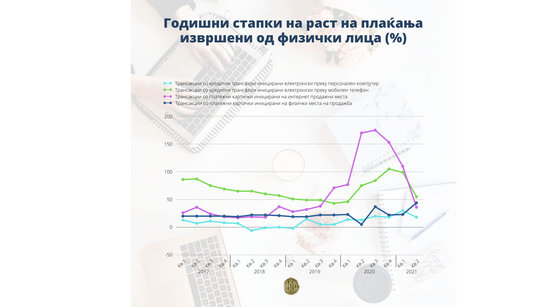 Плаќањата од страна на граѓаните во трговијата во земјата со платежни картички издадени од издавачи во земјата, во вториот квартал од 2021 година, забележаа значителен годишен раст кај вредноста и бројот на остварените трансакции од 35,2% и 43,7%, соодветно, што во значителен дел се должи на условит...