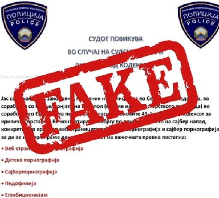 До неколку граѓани и правни лица, од страна на сторители кои лажно се претставуваат во име на МВР и ЕВРОПОЛ, се упатени лажни покани во врска со наводна тековна истрага, информираат попладнево од Министерството за внатрешни работи, упатувајќи апел до граѓаните да бидат внимателни и да не отвораат с...